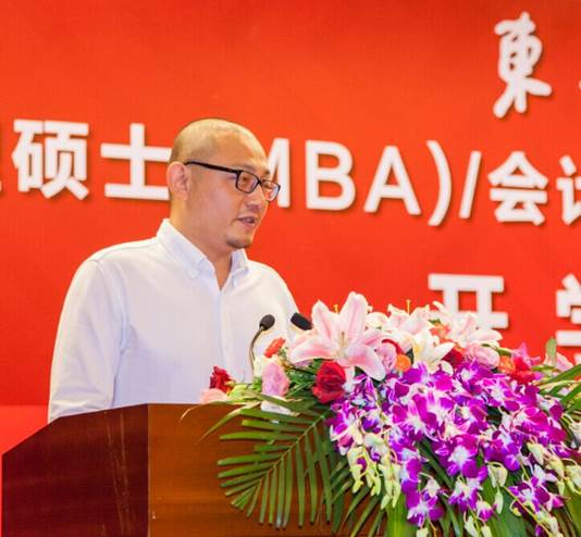 随后,优秀毕业生代表孙汝俊同学发言。他回顾过去两年多的学习期间,工作上产生了巨大的变化,从“副经理”上升为“事业合伙人”,通过学习,看待工作中问题的角度更为深入,具备更多的管理专业知识,掌握实用的管理技能。他也给新生们分享了三大学习法宝“集智、优术、尚实”,勉励各位新生在东华的学习生活中不断进步。