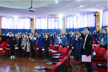 在管理164硕党支部刘菲菲同志领誓下,全体党员重温入党誓词。仪式最后,在座三、四月加入中国共产党的同志集体庆祝红色生日。