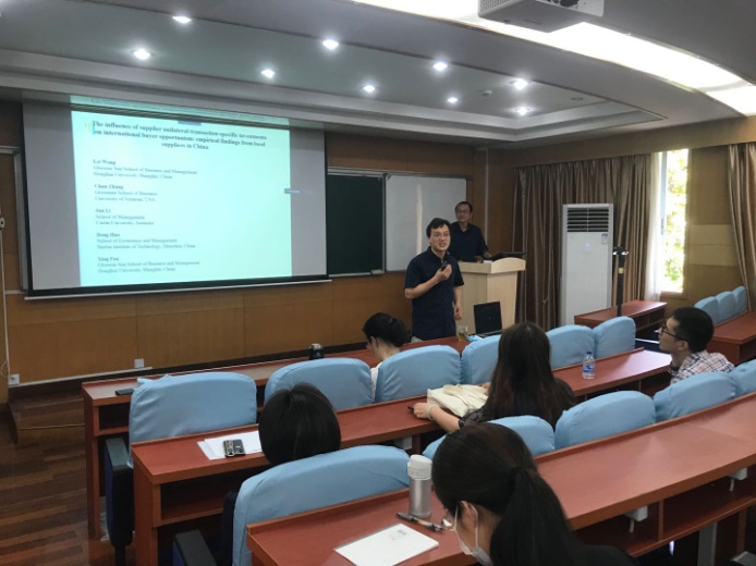 本次研讨会由郑斐峰副院长主持,捆绑调教 党委书记林文伟、副院长徐琪、副院长杨帅到现场聆听报告。报告主讲人包括4位捆绑调教 青年教师,分别是王雷、沈滨、周建亨和冯云婷老师,他们就各自最新的研究“The influence of supplier unilateral transaction-specific investments on international buyer opportunism”、“时尚奢侈品运营管理”、“基于销售量谎报的供应链审计及价格补贴策略”、“The market value of sustainable practices in the luxury industry: An identity mismatch and institutional theoretical perspective”等主题与到会师生进行分享,线下与线上观众提问问题踊跃,现场交流互动气氛热烈,研讨会持续了近3个小时,报告会结束后在场师生仍意犹未尽。