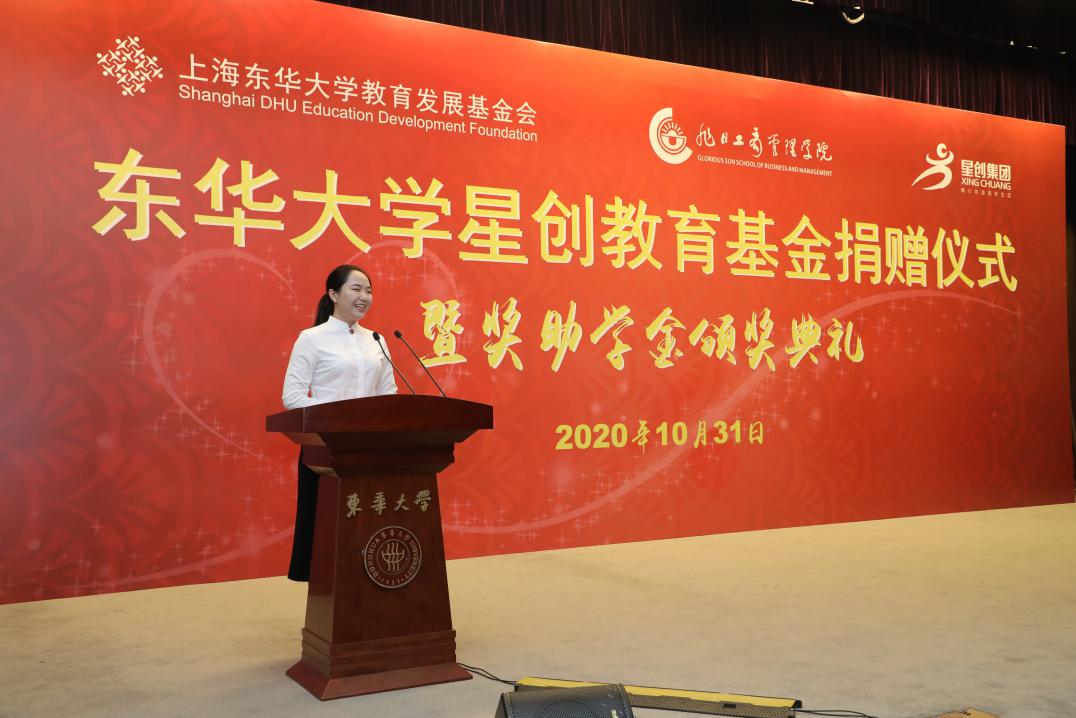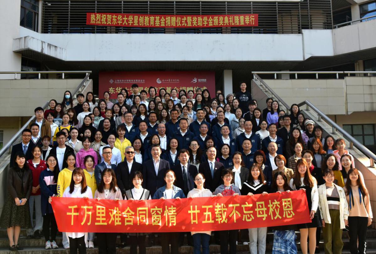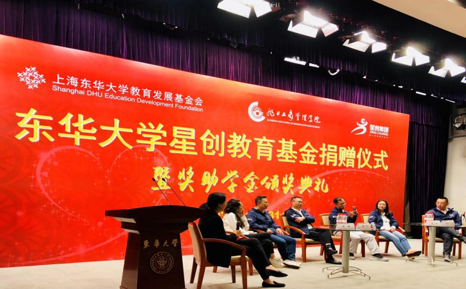 在捐赠仪式上,林德慧代表星创集团和工业管理工程91级校友讲话,他讲述了自己从学生时代到创业的艰程,并感念母校的培养,也感恩生命中的所有磨练,殷切期待学弟学妹们,能够把准人生航向,勤勉拼搏,将东华人“崇德博学砺志尚实”的精神发扬光大,成为有才学者、有信念者、有担当者。