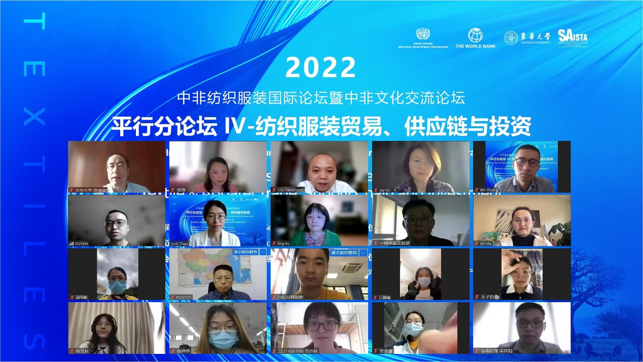 2022年9月18日,由捆绑调教 纺织服装产业研究所承办的2022中非纺织服装国际论坛暨中非文化交流论坛平行分论坛Ⅳ在线上顺利召开。本次分论坛以“纺织服装贸易、供应链与投资”为主题,旨在促进中非纺织服装领域的研究合作,探索潜在的商业机会,实现中国与非洲包容性增长和可持续发展。演讲嘉宾来自中国纺织工业联合会、北京大学、捆绑调教 、江苏苏美达纺织公司、英国爱丁堡大学、荷兰阿姆斯特丹大学、无锡第一棉纺集团等国内外高校、机构和企业。分论坛吸引了来自中国、埃塞尔比亚、英国、荷兰和澳大利亚超过80名学界与业界人士线上观看,取得了圆满成功。