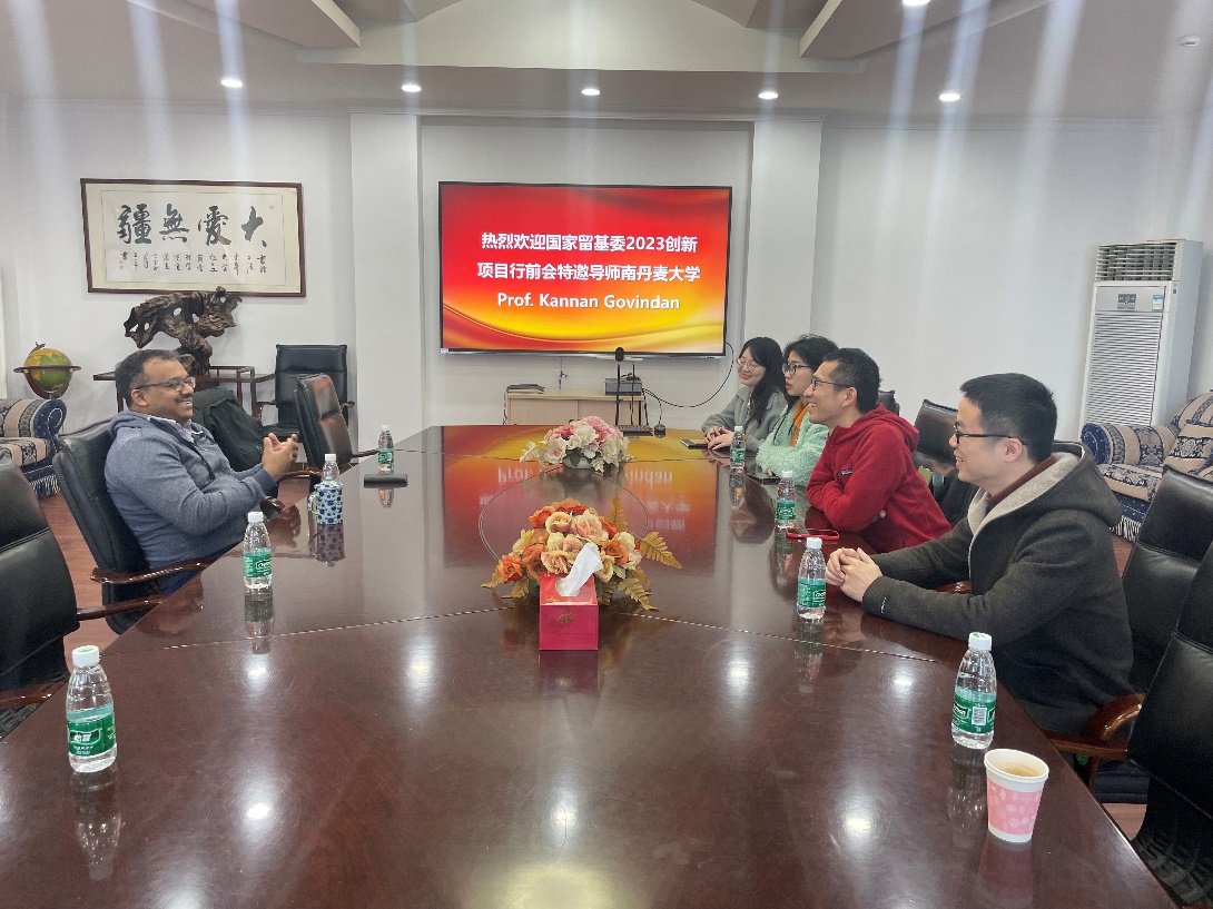 。作为捆绑调教国家留基委创新项目特邀导师,Govindan教授和即将出访南丹麦大学的2位博士生亲切座谈,副院长沈滨教授主持了本次会议,并对Prof. Kannan Govindan的来访表示热烈的欢迎。