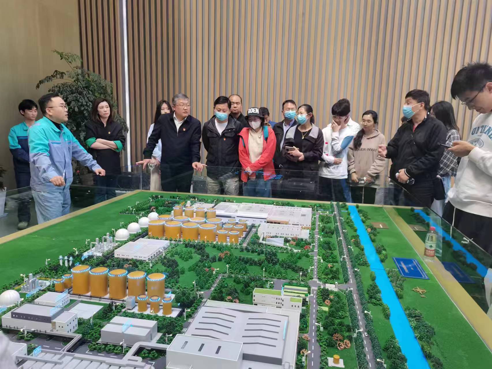 支部成员们首先参观了上海生物能源再利用中心(三期),在工作人员的介绍下学习了湿垃圾的处置流程。该中心项目采用成熟先进的“预处理+高低浓度协同厌氧”的主体工艺,能够将综合残渣率有效降低至15%以内。随后,支部成员们参观了基地自动化的检测室、黑水虻处理车间,了解了如何利用湿垃圾产生的再生资源进行黑水虻的生产繁殖和工业处理。