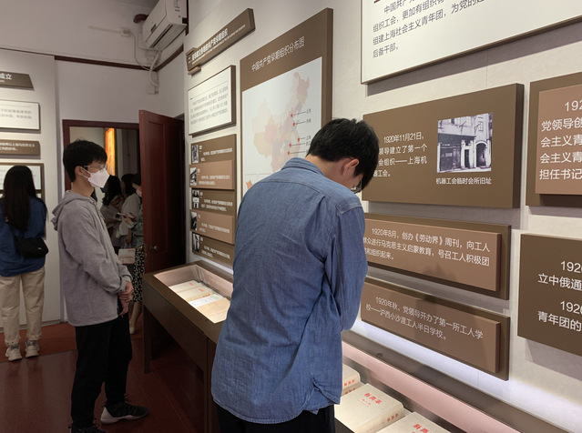 随后,党支部前往了《新青年》编辑部旧址参观。编辑部旧址通过图文展板、文物陈列、数字影像等形式,在有限的空间内呈现了《新青年》出版、中共一大筹备等在该空间中发生的重要事件。党员们仔细阅读文史资料,观看介绍视频,于星火初燃之地学习党史,回顾初心使命,激发奋进力量。
