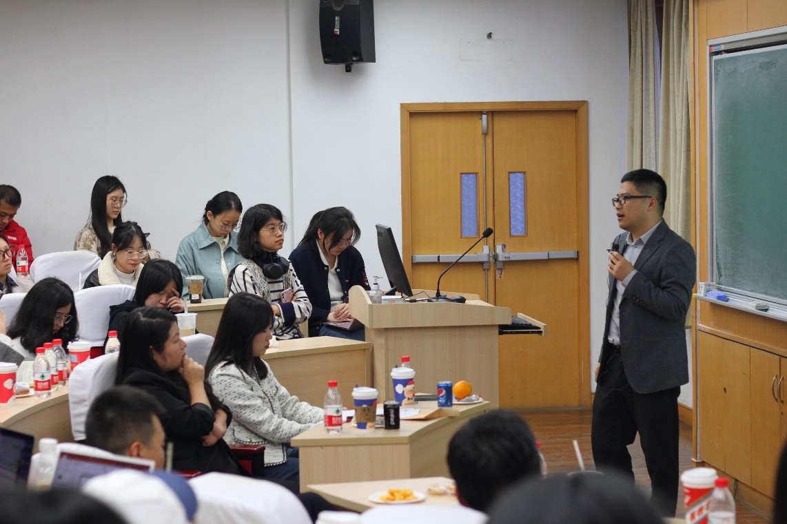 曹丰副教授在主题为“ESG评级分歧、组织合法性与企业数字化转型”的报告中,阐述了ESG评级分歧度对企业数字化转型的影响,并且深入浅出地分享了如何更好地立足于业界实践开展学术研究。同学们也围绕着ESG评级和企业数字化转型两大热点话题积极提问,现场气氛热烈。