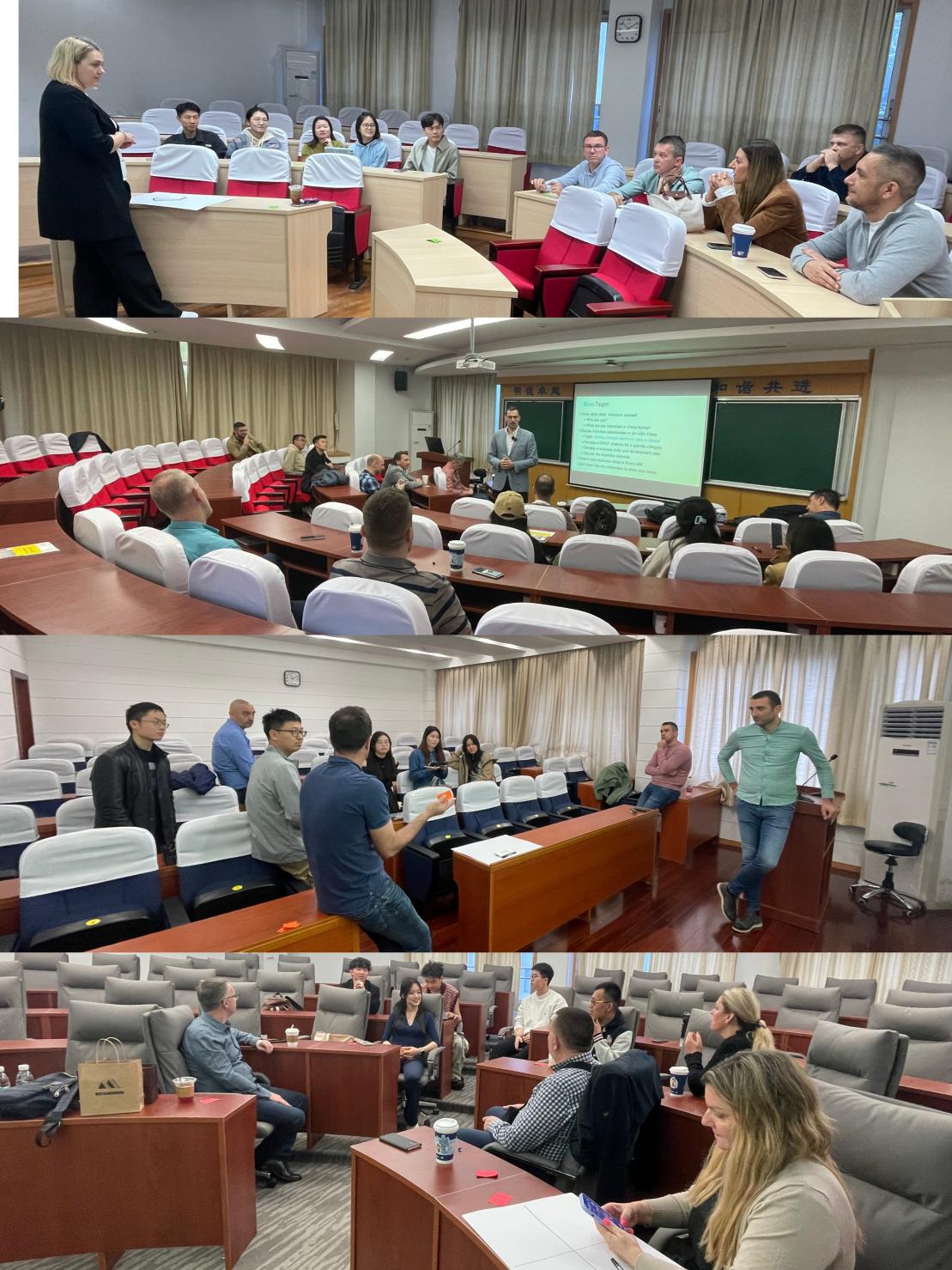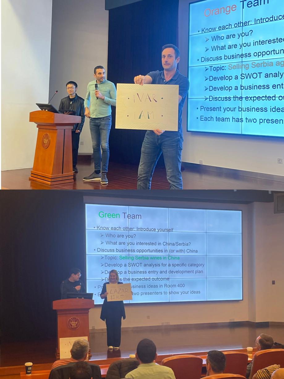 随后,来自塞尔维亚商捆绑调教 的30多名MBA学生分别和在场的东华MBA学生随机组合成4个小组,共同就中塞时尚品牌、农产品、纯电汽车以及红酒等品牌的商业合作、市场开发等为主题展开了热烈的小组讨论。中塞双方学员从各自熟悉的领域出发,探讨新的商业合作的机遇与挑战,问题及对策,并分享了各自的观点和经验。