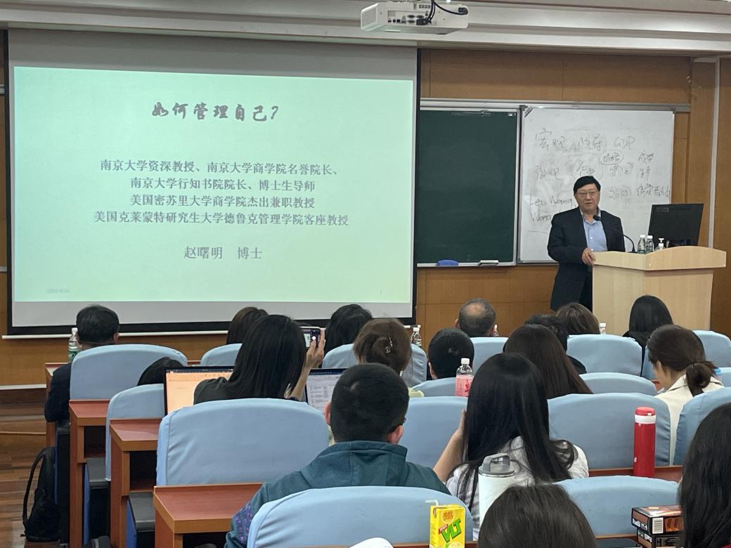 名誉院长、南京大学文科资深教授赵曙明作题为“如何管理自己”的学术报告。本次报告由管理捆绑调教