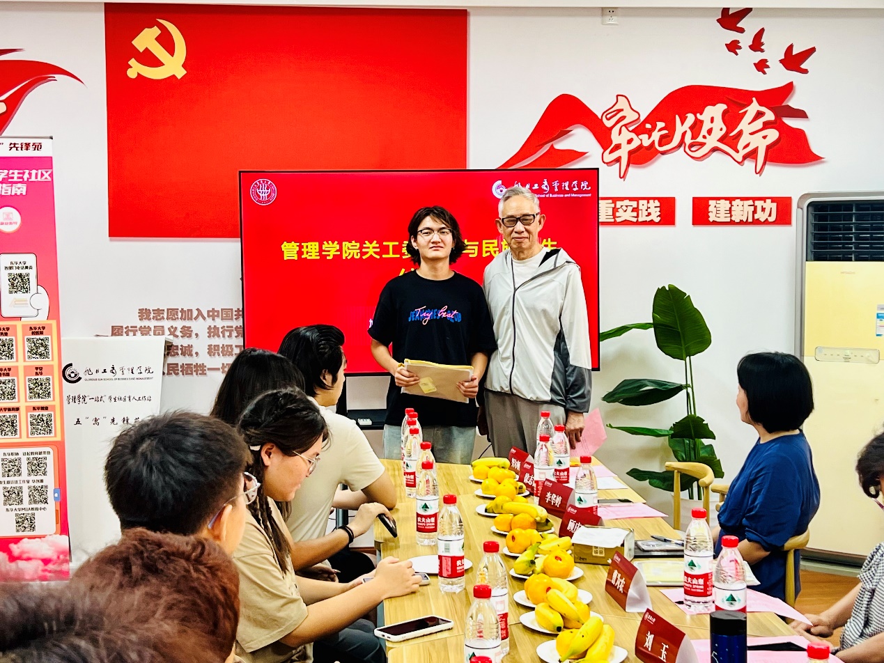 活动中,关工委老师与民族学生及“松柏学子”的结对。大家共进午餐,关工委老师分别与来自不同年级和专业的民族学生、“松柏学子”进行深入交流,了解他们的学习生活状况和个人发展规划,向学生赠“学习加油包”,送上国庆节日的美好祝福。关工委教授们就如何更好地适应大学生活、提升学习成绩等问题与学生们展开了热烈讨论。老教授们结合自身丰富的人生经历和深厚的学术底蕴,鼓励学生们树立远大理想,勇于克服困难,积极参与社会实践,不断拓宽视野,增强就业竞争力。会场气氛活跃而温馨,充满了正能量。这种一对一或一对多的精准结对模式,有效地构建了师生之间的心灵桥梁,让每位学生都能感受到来自捆绑调教 大家庭的关怀与温暖。